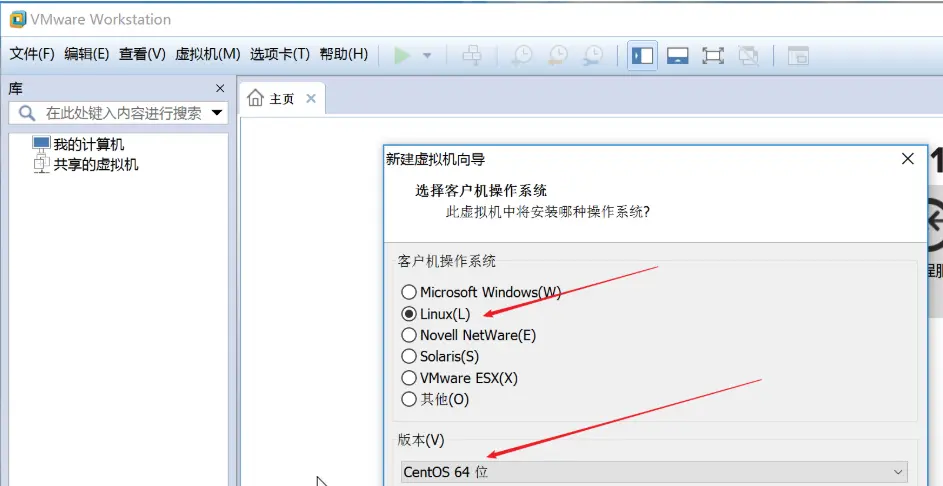 7、选择操作系统(Linux->CentOS)