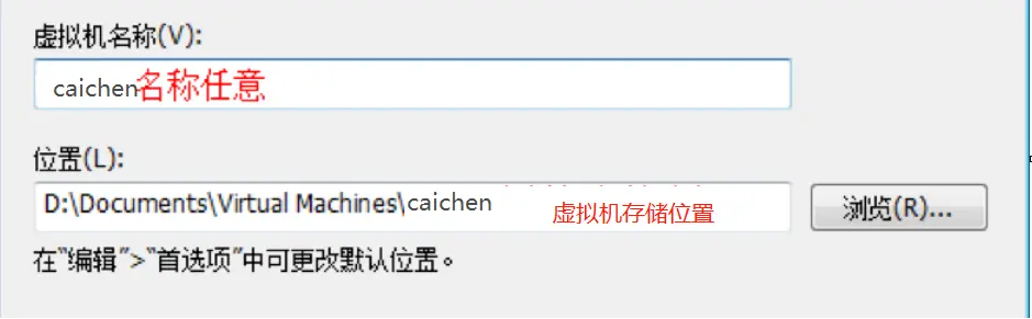 8、选择虚拟机名称以及存放路径