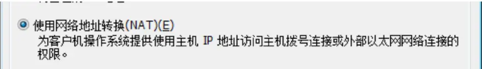 使用网络地址转换(NAT):虚拟机可以联网,与本机互通,与本机网段内其他主机不通。