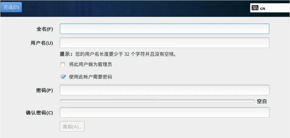 Tips:设置Root密码,如果密码长度少于8位,会提示要按“完成”两次来确认,安装继续。学习阶段设置简单密码即可