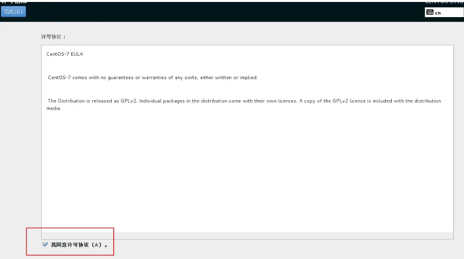 选中 我同意许可协议 - 完成