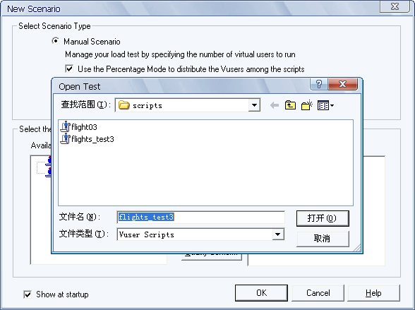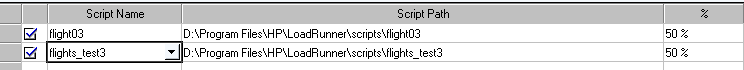 未勾选Use the Percentage Mode to distribute the Vusers among the scripts: