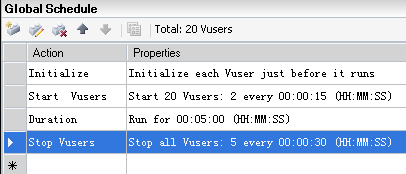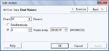 . Initialize –Vusers every---(每隔一段时间初始化一定数目的虚拟用户)