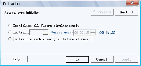. Initialize all Vusers simultaneously(同时初始化所有的虚拟用户)