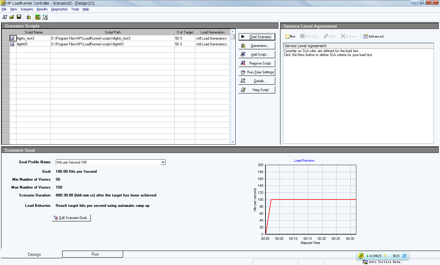 允许Load Runner控制器根据具体的目标创建一个场景