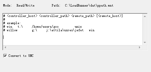 选择“Convert to UNC”复选框,指示Load Runner忽略路径转换表并将所有路径都转换为通用命名约定格式。
