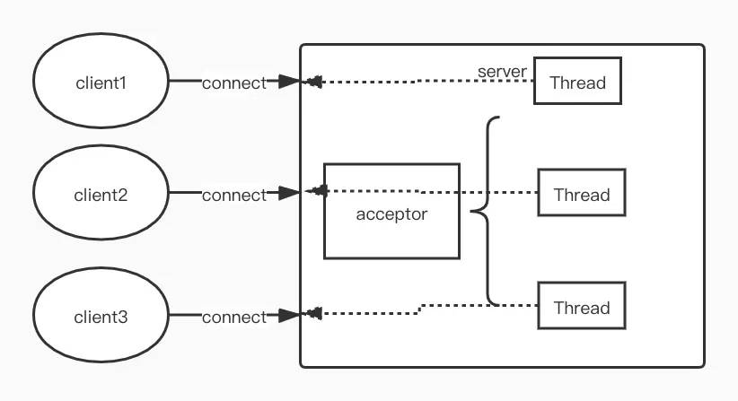 传统的BIO通信当接收到客户端的请求时,为每一个请求创建一个新的线程进行链路处理,处理完成之后,通过输出流返回给客户端,然后线程销毁。