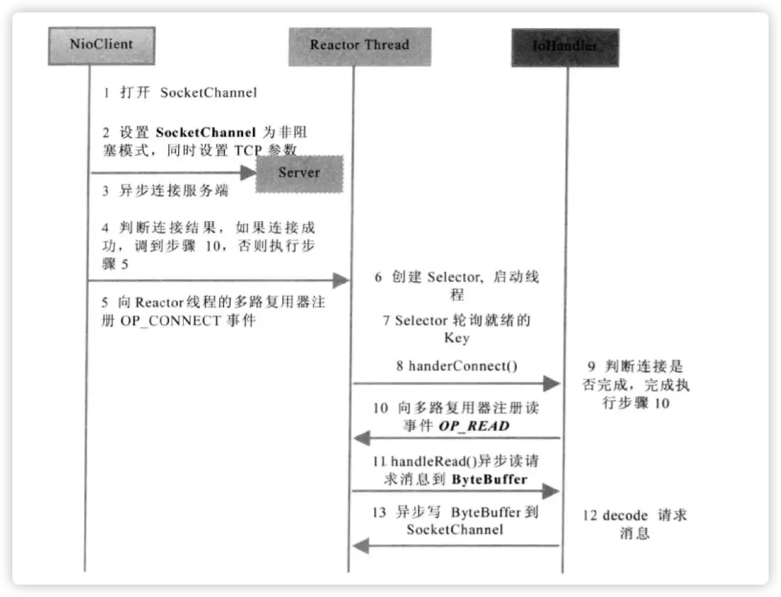 Selector注册OP_CONNECT等待后续结果,不需要像之前客户端那样被同步阻塞; SocketChannel的读写操作都是异步的,如果没有可读写的数据,直接同步返回,这样通信IO线程就可以处理其他的请求,不会被阻塞。- 由于JDK的