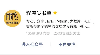 关注公众号【程序员书单】回复“book”领取30 本Java工程师精品电子书