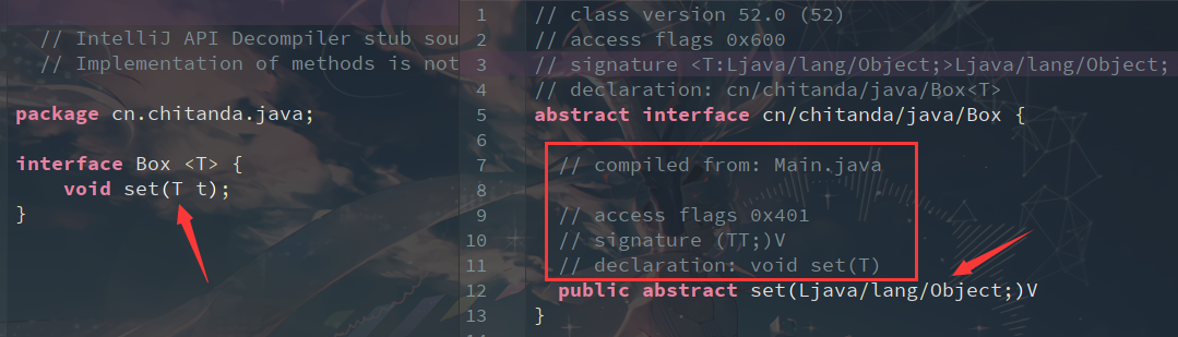 查看MyBox类字节码可以发现不仅有一个set方法,还有一个桥接方法