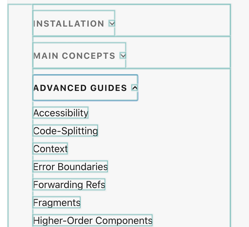 我们激活这个特性之后,在 ReactJS 官网开启关闭右侧的菜单,会出现边框提示: