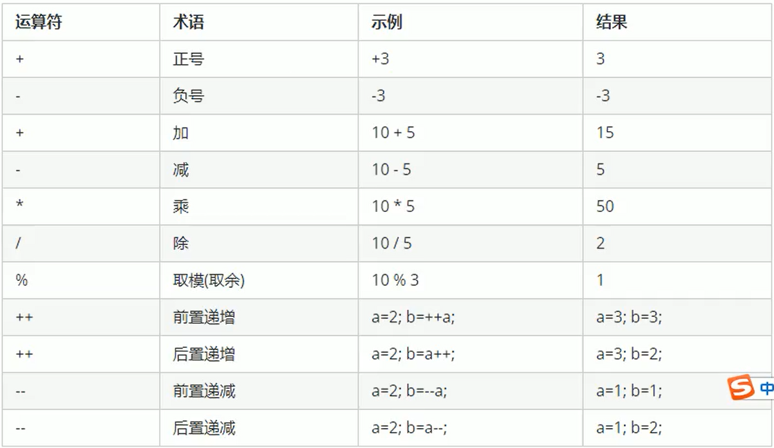 1.加减乘除运行符