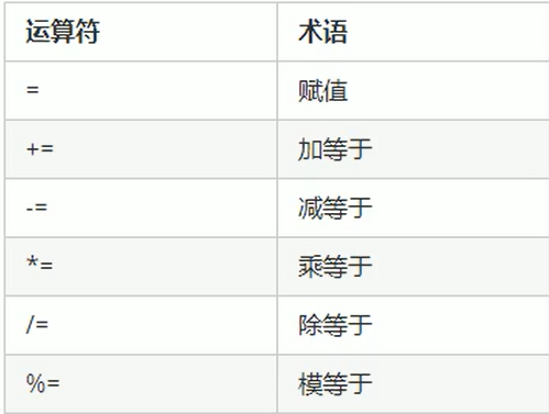 - "+="将值加赋给变量