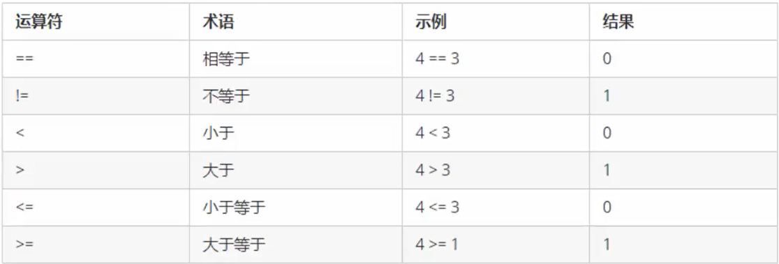 这些运算符算一个判断,返回值是0或1,就是真还是假。记住0代表假,1代表真