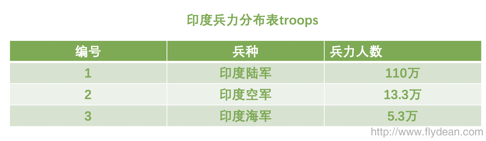 我们看一下印度的兵力分布表: