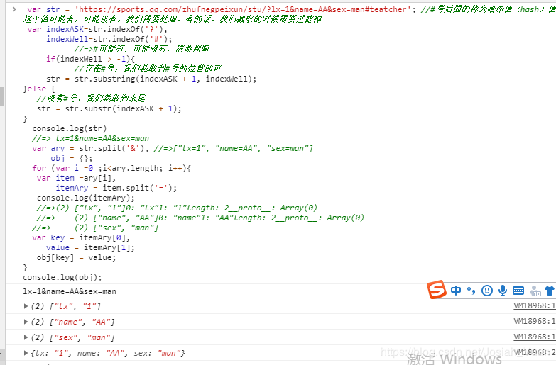 var str = 'https://sports.qq.com/zhufnegpeixun/stu/?lx=1&name=AA&sex=man#teatcher'; //#号后面的称为哈希值(hash)值,这个值可能有,可能没有,我们需要处理,有的话,我们截取的时候需要过滤掉