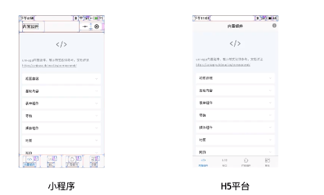 组件:不同的平台有着自己不同的属性,因此,uni-app通过自己特有的语法替代了他们,并且在编译之后编译成目标代码。如果是平台特有的代码,则在编译时通过条件编译进行实现。如果是目标平台不支持的属性,则在运行的时候不生效,这样就保证了,即使是不支持的,也不会报错。