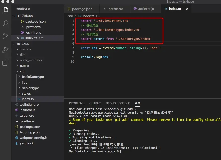 一、本文目标:TS+Eslint+prettier+husky代码提交自动格式化及修复的实现