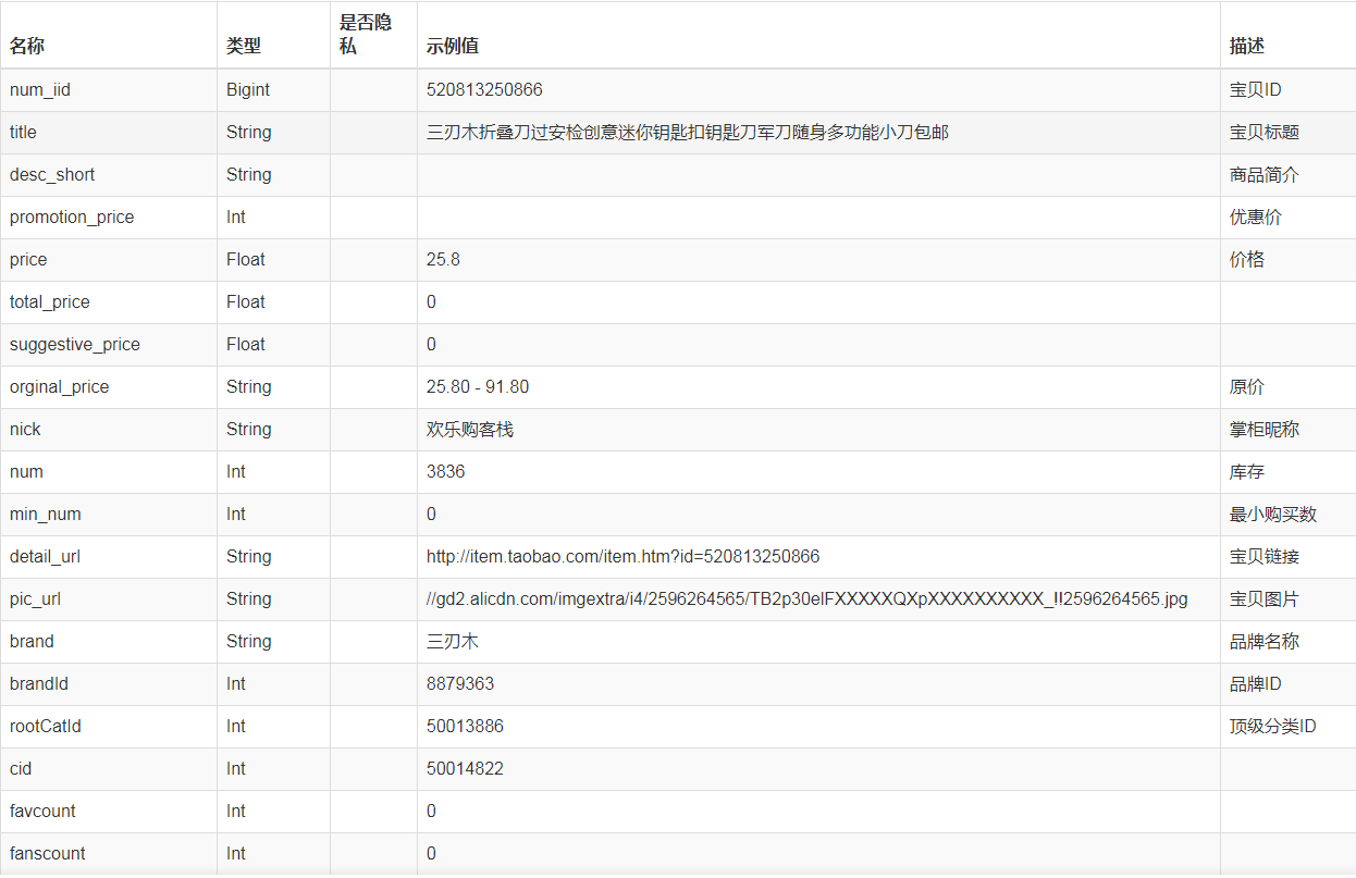 { "item": { "num_iid": "520813250866", "title": "三刃木折叠刀过安检创意迷你钥匙扣钥匙刀军刀随身多功能小刀包邮", "desc_short": "", "price": 25.8, "total_price": 0, "suggestive_price": 0, "orginal_price": "25.80", "nick": "欢乐购客栈", "num": "832", "min_num": 0, "detail_url": "http://item.taobao.com/item.htm?id=520813250866", "pic_url": "//img.alicdn.com/imgextra/i4/2596264565/TB2p30elFXXXXXQXpXXXXXXXXXX_!!2596264565.jpg", "brand": "三刃木", "brandId": "4036703", "rootCatId": "50013886", "cid": "50014822", "favcount": "4824", "fanscount": "1468", "crumbs": [], "created_time": "", "modified_time": "", "delist_time": "", "desc": "<p style="text-align:center;"><span style="color:#ff0000;"><span style="font-size:24.0px;">小店所有产品都支持刻字,如需刻字,拍之前联系客服即可。