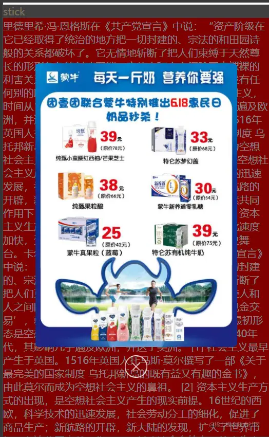 基本功能:位于一个页面非顶部的元素,随着滚动条滚动会自动吸附到指定位置。