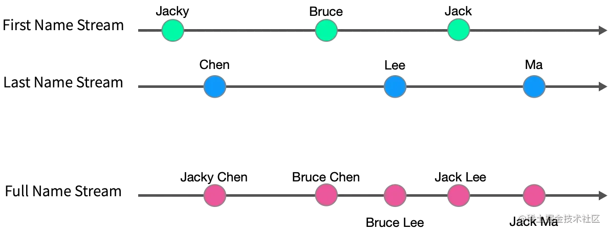 const fullName$ = combineLatest([firstName$, lastName$]).pipe(map(([firstName, lastName]) => `${firstName} ${lastName}`));