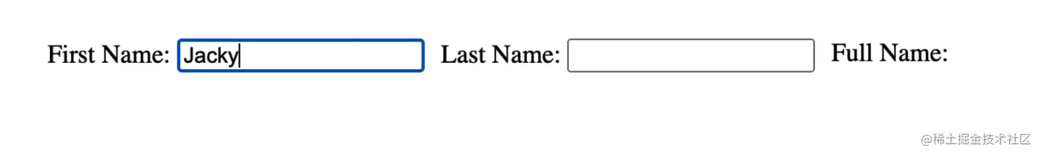 传统做法思路:分别给两个 input 添加事件监听,当 input 更新时,动态修改 Full Name.