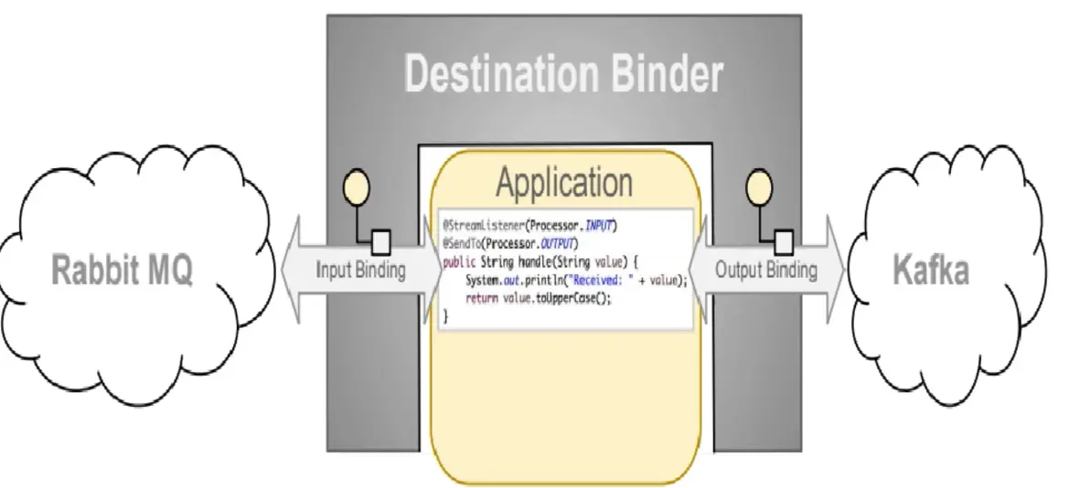 应用程序通过inputs或者outputs来与Spring Cloud Stream中binder对象交互。