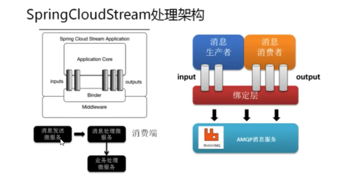 通过我们配置来binding( 绑定),而SpringCloud Stream的binder对象负责与消息中间件交互。