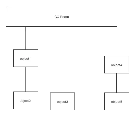 可达性分析算法是从离散数学中的图论引入的,程序把所有的引用关系看作一张图,通过一系列的名为 “GC Roots” 的对象作为起始点,从这些节点开始向下搜索,搜索所走过的路径称为引用链(Reference Chain)。当一个对象到 GC Roots 没有任何引用链相连(用图论的话来说就是从 GC Roots 到这个对象不可达)时,则证明此对象是不可用的,如下图所示。在Java中,可作为 GC Root 的对象包括以下几种: