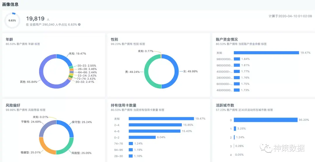 在运营中,往往基础客户的运营是需要进行群体客户画像分析,从而制定针对特定分群客户的活动策略,但对于高净值客户,客户经理需要掌握高净值客户的资金变动、投资偏好以及兴趣的变化,单用户画像功能是客户经理提升对高净值客户服务的利器。以下是客户画像示例,即可进行群体画像,也可进行单用户画像。
