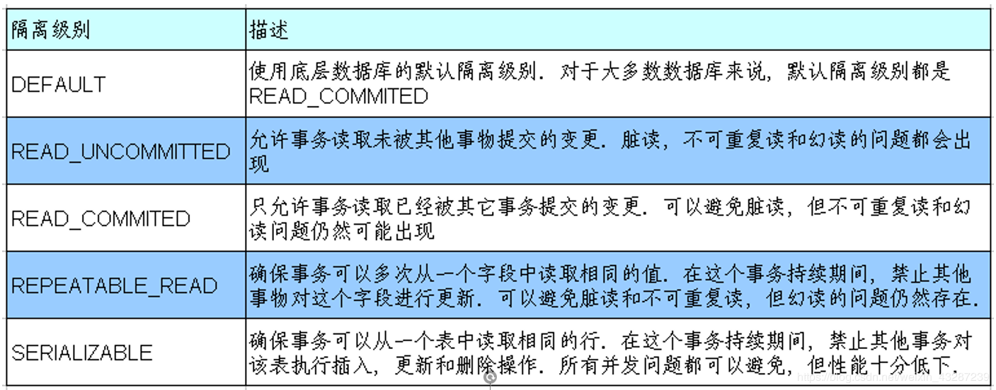 - 事务的隔离级别要得到底层数据库引擎的支持,而不是应用程序或者框架的支持