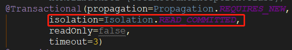 isolation指定事务隔离性,也可以在配置文件中指定