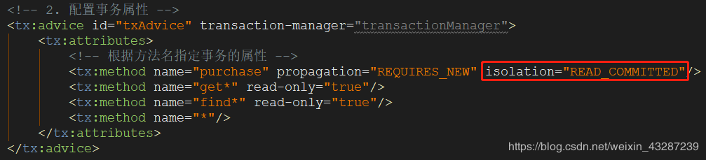 <!-- 2. 配置事务属性 -->