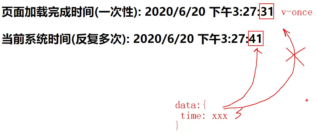 (6). 示例: 使用v-once绑定页面加载完成时间