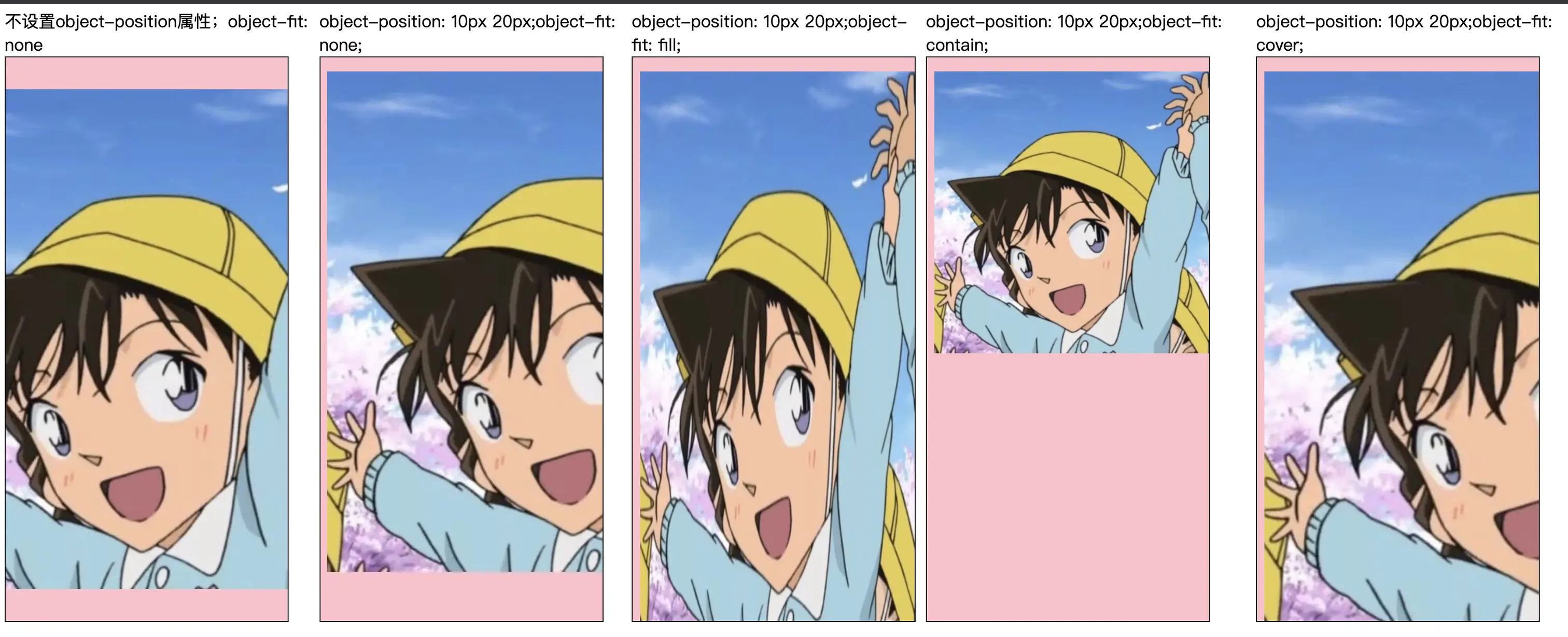 当没有给定object-fix时给定不同值时具体的表现形式如下