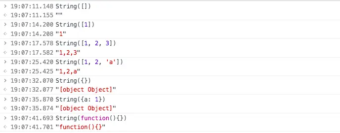 - 参数为数组时均转换为字符串,用逗号连接;空数组转换为空字符串