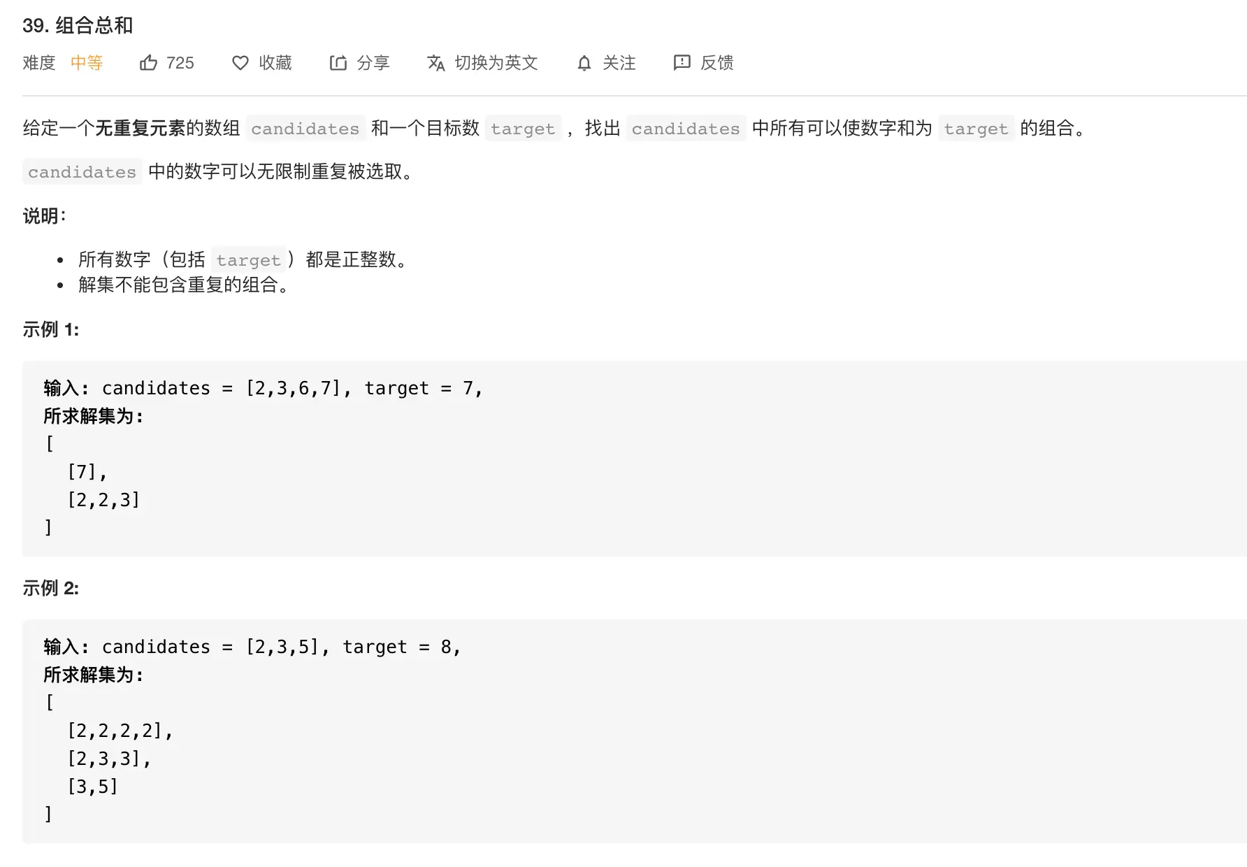candidates 中的数字可以无限制重复被选取。