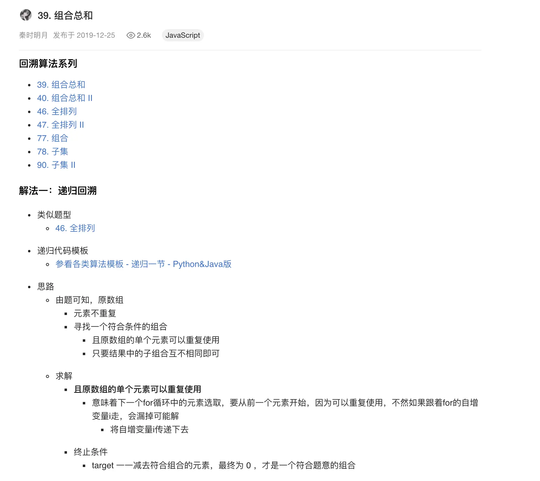 在leetCode中看到一道题目,非常有意思 题目为: 给定一个无重复元素的数组 candidates 和一个目标数 target ,找出 candidates 中所有可以使数字和为 target 的组合。
