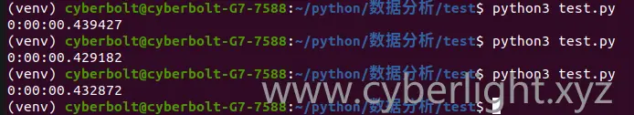测试环境:Ubuntu 20.04 LTS, Python 3.8.2, Intel® Core™ i7-8750H CPU @ 2.20GHz × 12