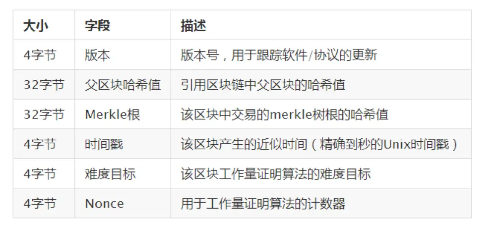 Nonce、难度目标和时间戳会用于挖矿过程,Merkle根用来索引和组织该区块所有的交易信息。