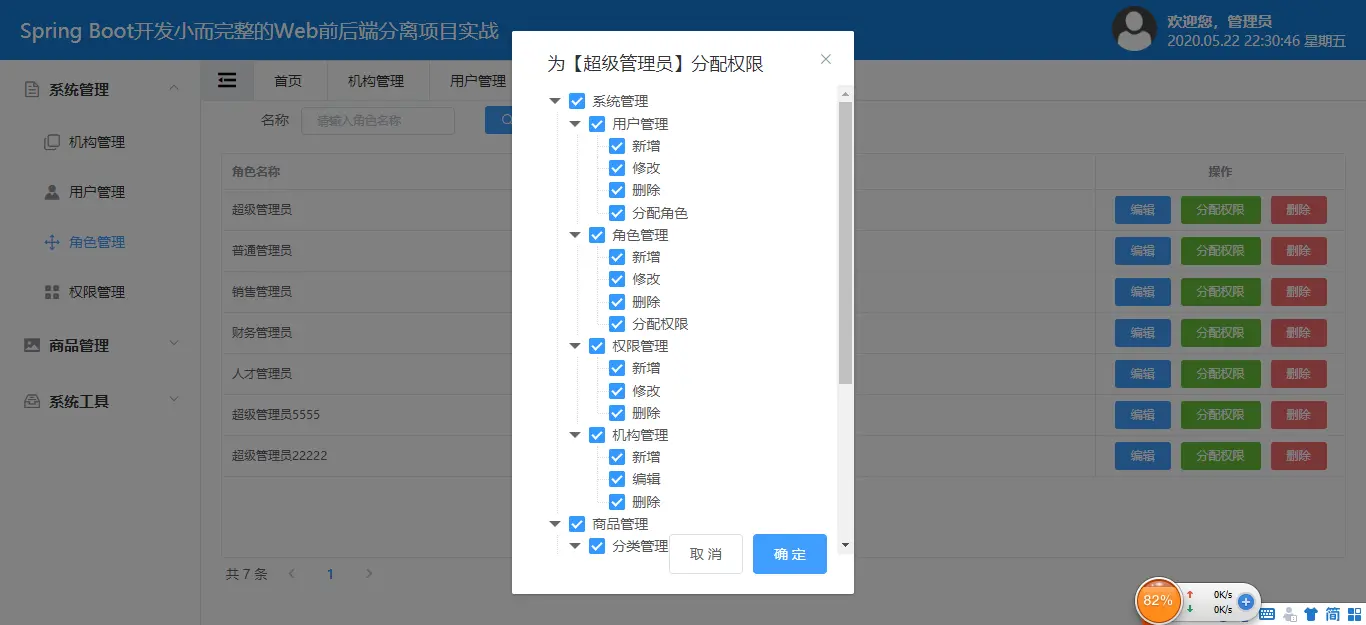 课程分前端和后端两部分;前端采用Vue Element 完成界面布局,从零开始搭建前端项目,手把手带领搭建完成从0到1的完成前端项目的开发,数据接口对接,动态菜单的加载,动态路由的生成,token的校验等;后端采用Spring Boot 、Spring Security开发接口,从0开始带领搭建后端项目,权限管理设计开发、Spring Security权限框架在前后端分离项目中的使用等。课程做了详细的笔记文档,方便使用学习。