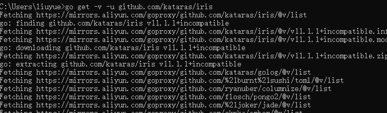 之后就可以安心的使用 go get 来安装彩虹女神Iris了