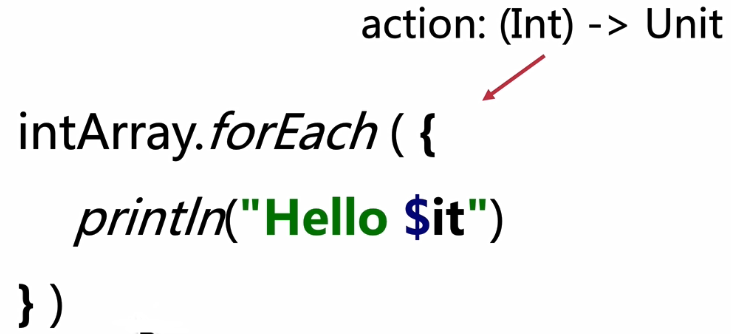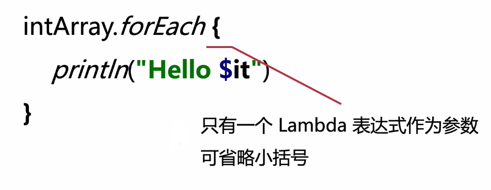 如果函数类型的参数是唯一一个传入参数,那么在调用的时候,函数类型的参数已经写到小括号外面了,小括号里面什么都没有,可以去掉,而且推荐去掉,这为后面的DSL语法打下了基础。
