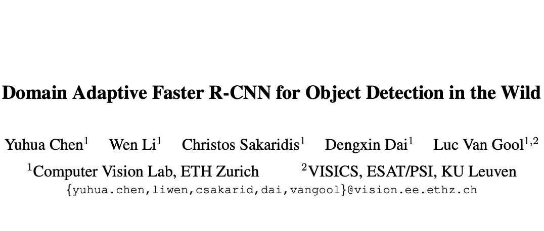 论文: Domain Adaptive Faster R-CNN for Object Detection in the Wild