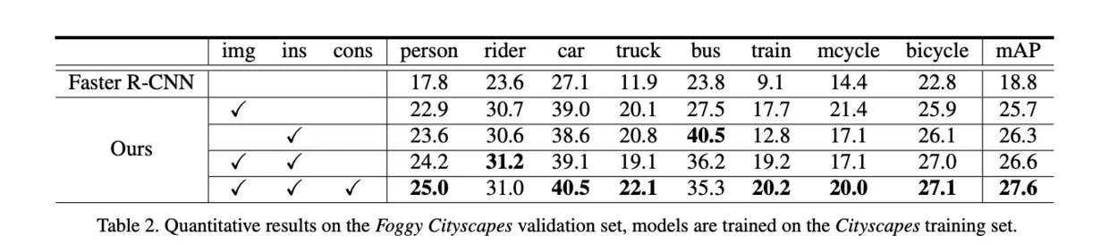 Foggy Cityscapes通过生成雾来模拟真实场景,这里对比天气带来的域转移。