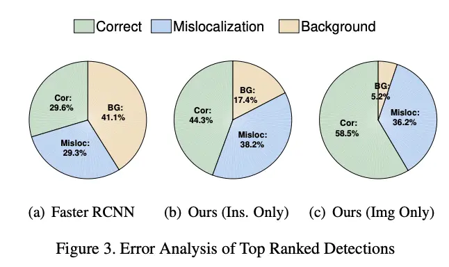 每个模块都能提升一定的准确率,而图片级对齐的背景错误率较高,这可能由于图片级对齐对RPN的提升更直接。