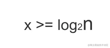 x 解出来,就是要大于等于以 2 为底数的 n 的对数: