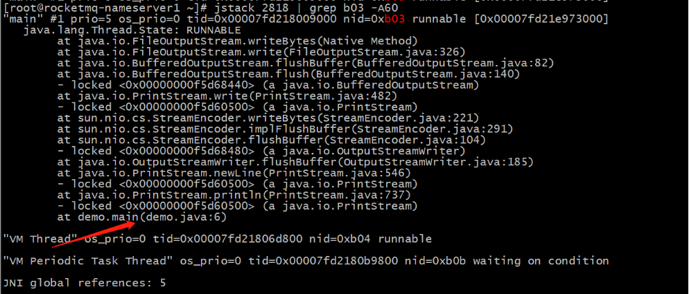 在使用jstack查看线程的堆栈信息jstack pid |grep tid -A60