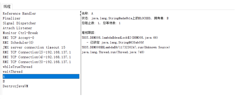 示例二:JConcle示例死循环、阻塞等待、死锁现象