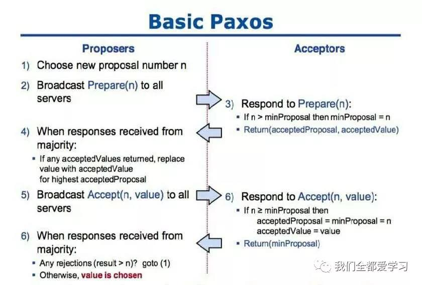 - Acceptor:参与决策,回应Proposers的提案。收到Proposal后可以接受提案,若Proposal获得多数Acceptors的接受,则称该Proposal被批准。